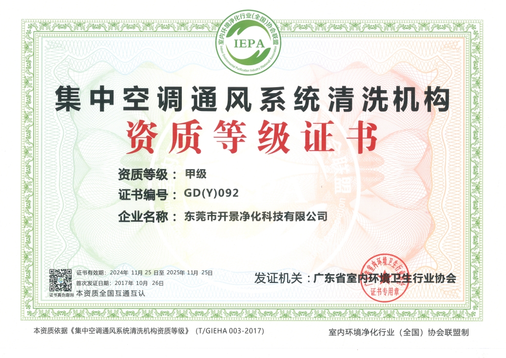 东莞市开景净化科技有限公司一家专注于中央空调维修、保养、清洗、维保、安装、改造、销售等一站式服务的中央空调水处理及通风系统解决方案公司。